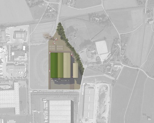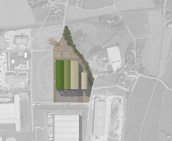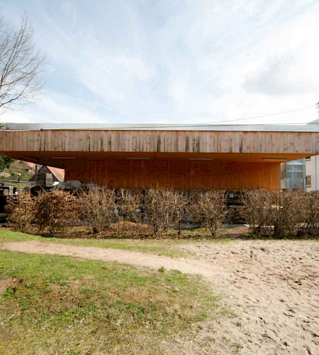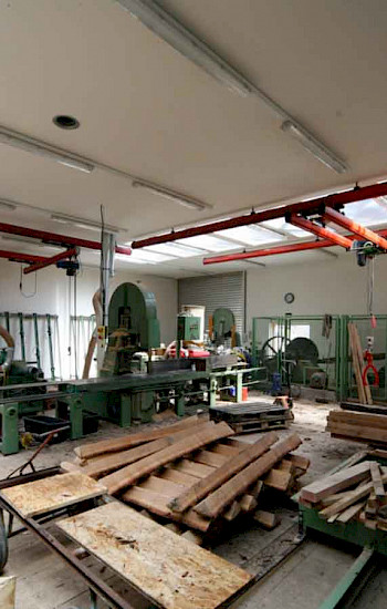 Neubau eines Sägewerks über vorhandenem Horizontalgatter in der Dorfmitte.