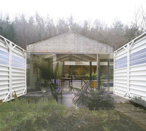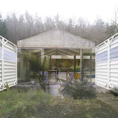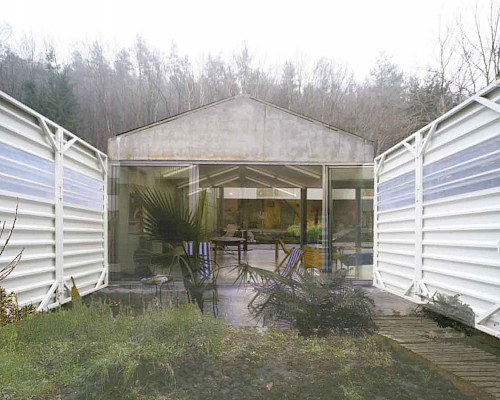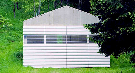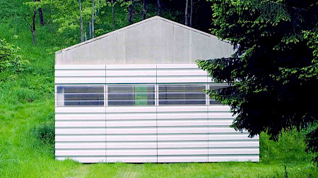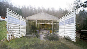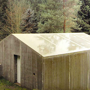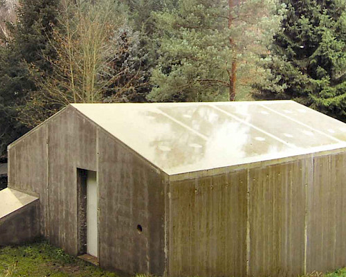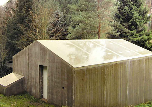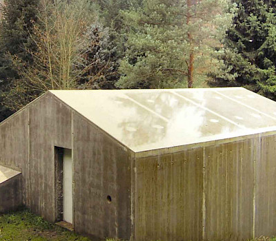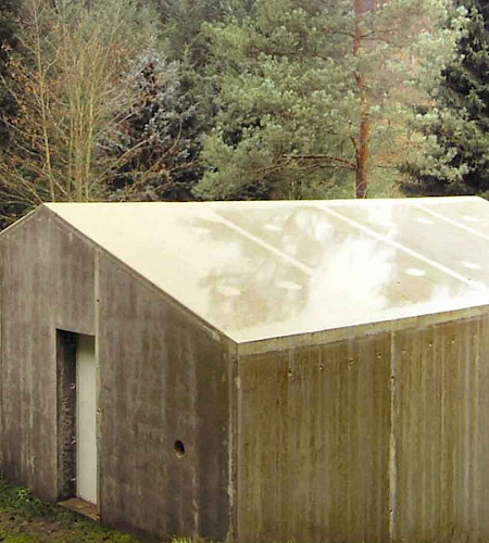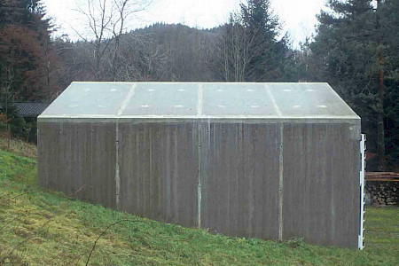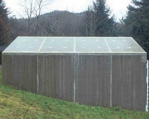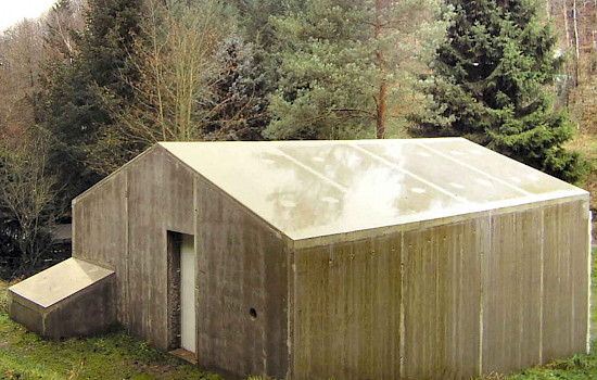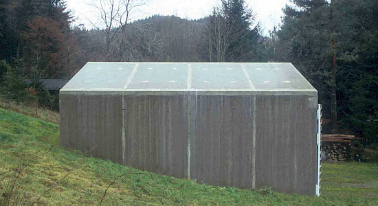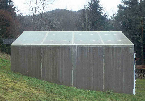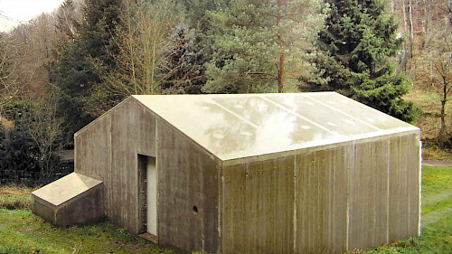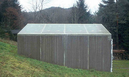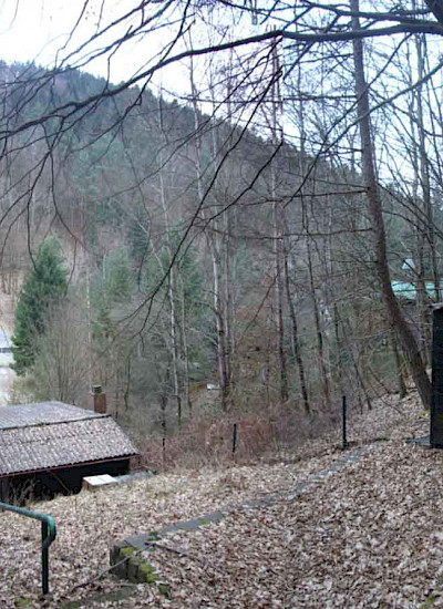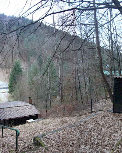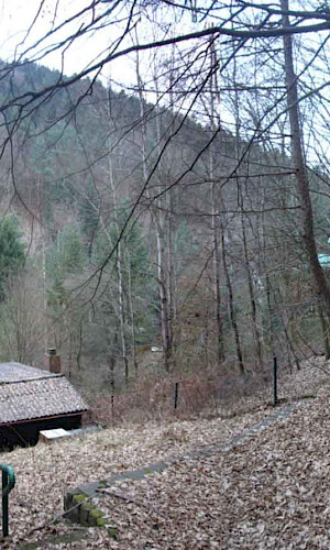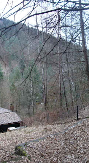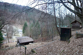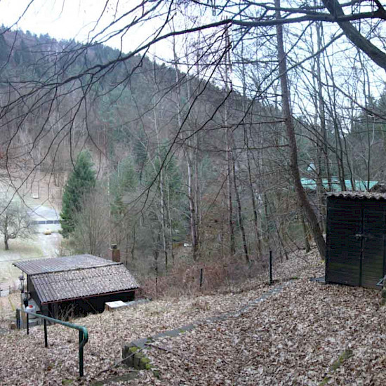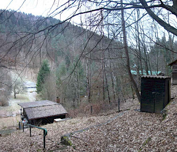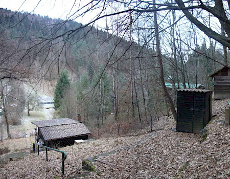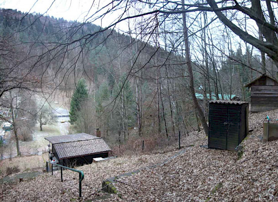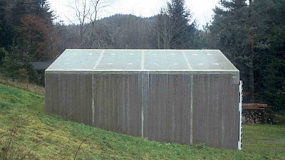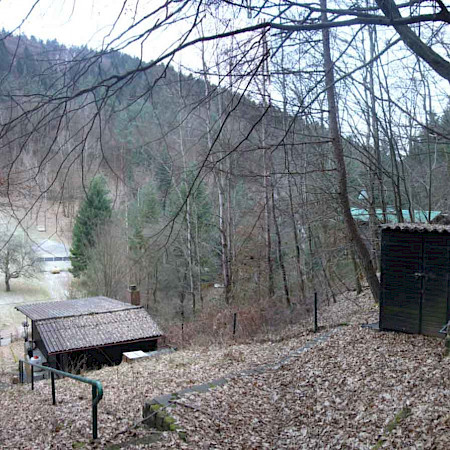 Wochenendhaus. Unimogunterstand. Scheune im Schliertal bei Frankenstein / Pfälzer Wald.